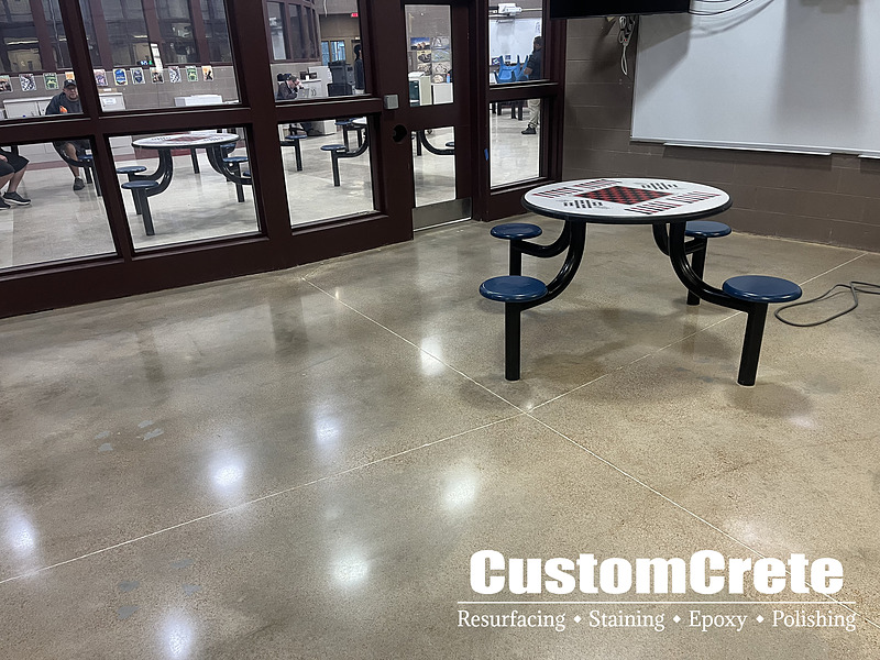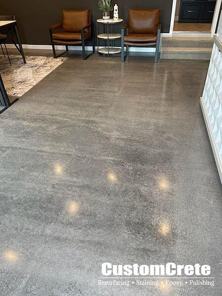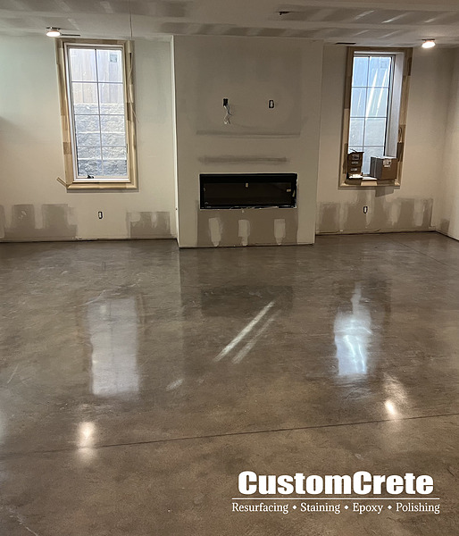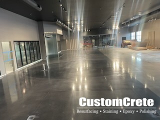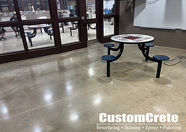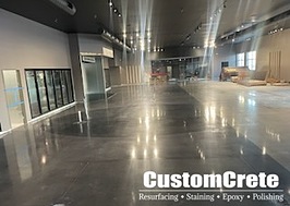 A text logo reading CustomCrete Resurfacing, Staining, Epoxy, Polishing.